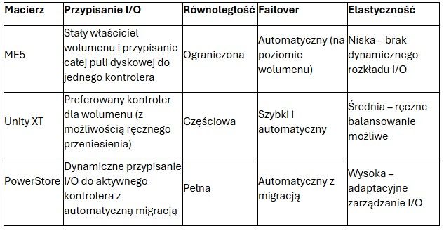 Bei Dell PowerVault ME5 haben wir es mit einer Dual-Controller Active-Active-Architektur zu tun, die jedoch keine vollständige Parallelität bei der Datenverarbeitung bedeutet. Obwohl beide Controller aktiv sind, führen sie keine dynamische Lastverteilung für I/O-Operationen durch, die dasselbe Volume betreffen. Die Parallelität existiert jedoch auf der Ebene des gesamten Arrays – wenn Disk-Pools zwischen den Controllern aufgeteilt sind, können die ihnen zugewiesenen Volumes gleichzeitig verarbeitet werden, jedes durch seinen Controller.