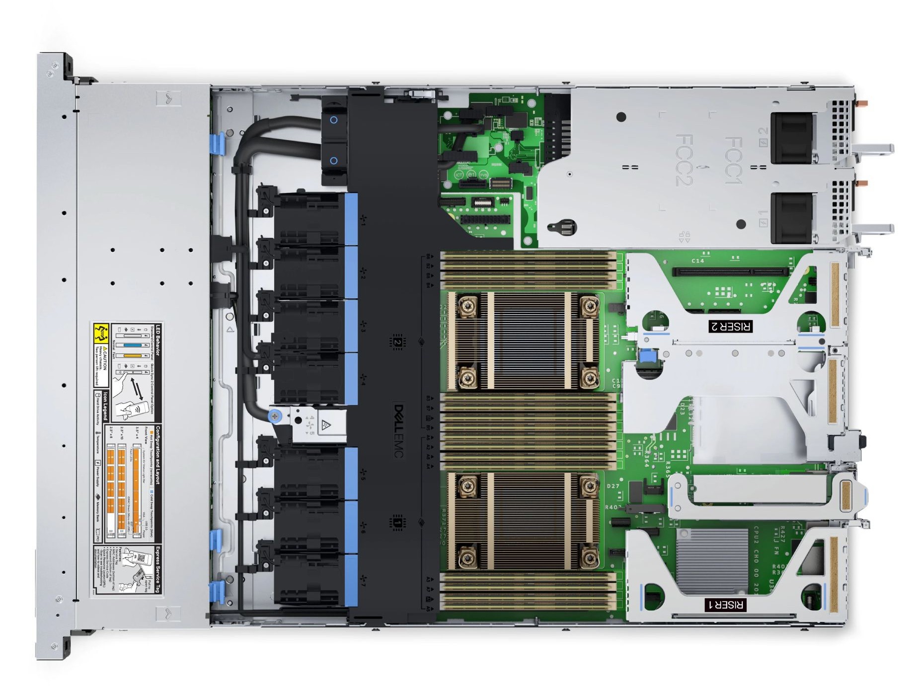 Die Fotos dienen nur zur Veranschaulichung. Einige Komponenten der Serverkonfiguration, wie z. B. Riser, können von den auf den Fotos abgebildeten Komponenten abweichen.